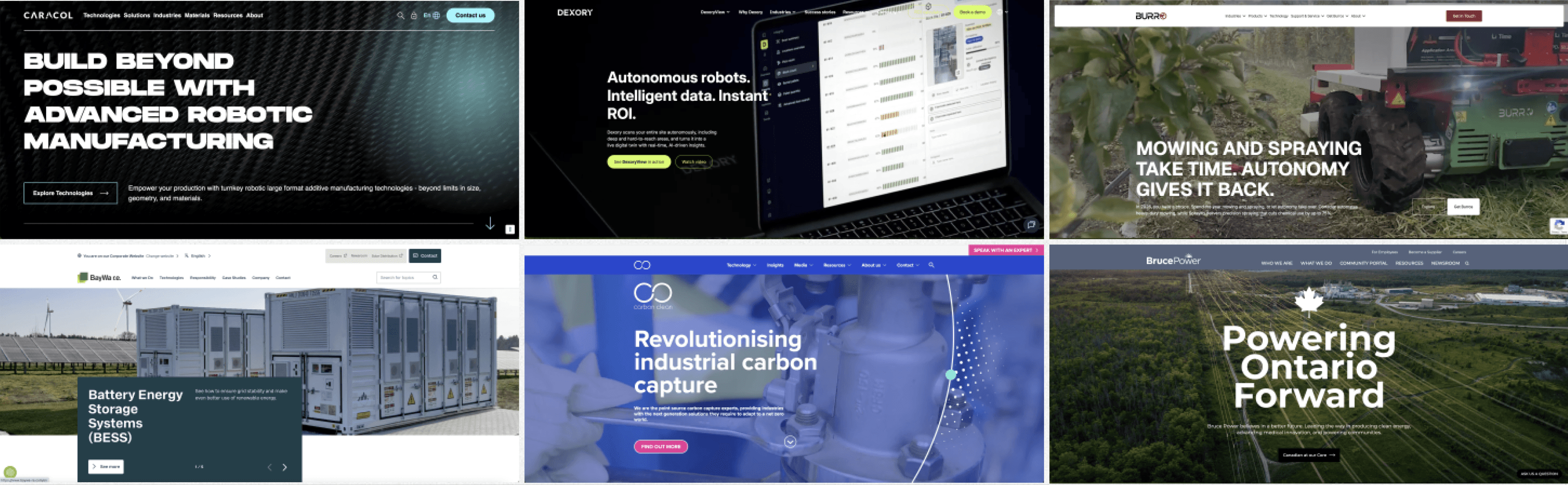 Energy, robotics, and manufacturing companies focus more on productivity and reliability. Their websites tend to show real environments, real machines, and real people working alongside technology.