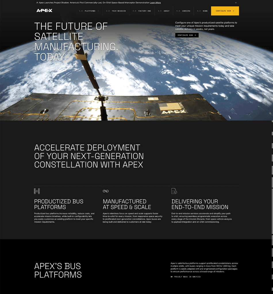 When technologies are unfamiliar and investments are large, credibility matters more than speed. As a result, deep tech homepages frequently emphasize signals of legitimacy: press coverage, institutional partnerships, government relationships, origin stories, and large-scale manufacturing or deployment environments.