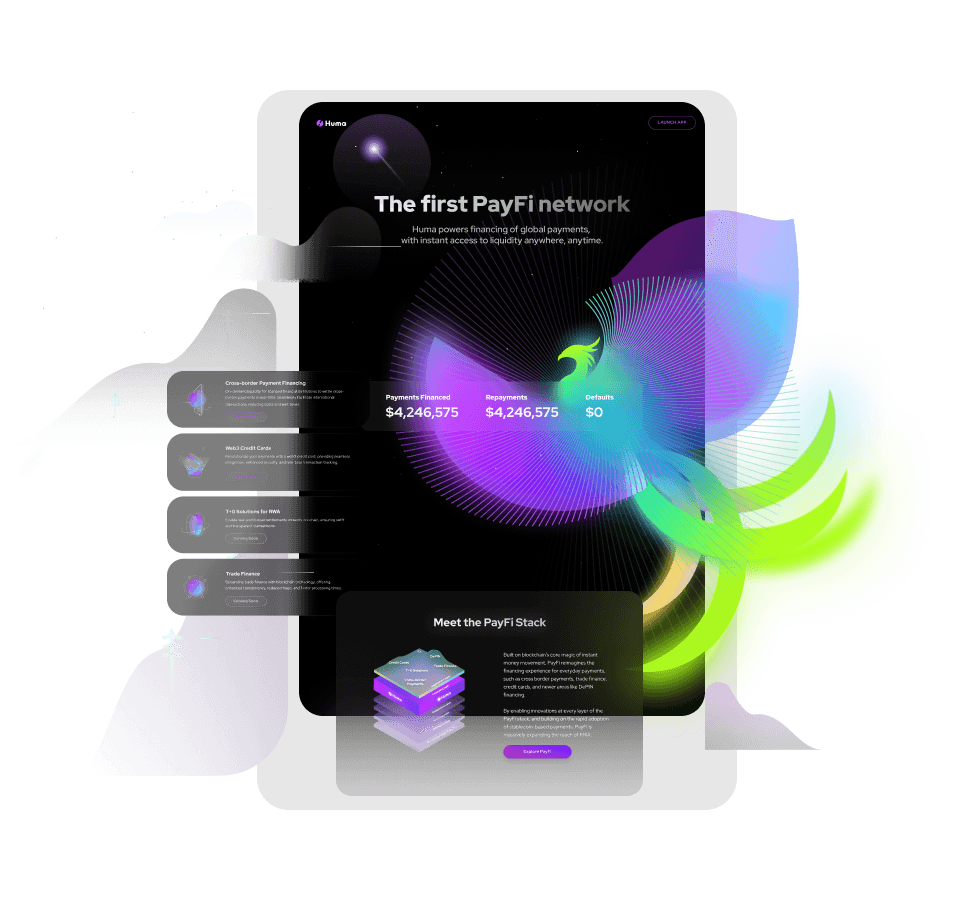 Huma powers financing of global payments, with instant access to liquidity anywhere, anytime. Built on blockchain’s core magic of instant money movement, PayFi is massively expanding the reach of RWA by reimagining the financing experience for everyday payments.