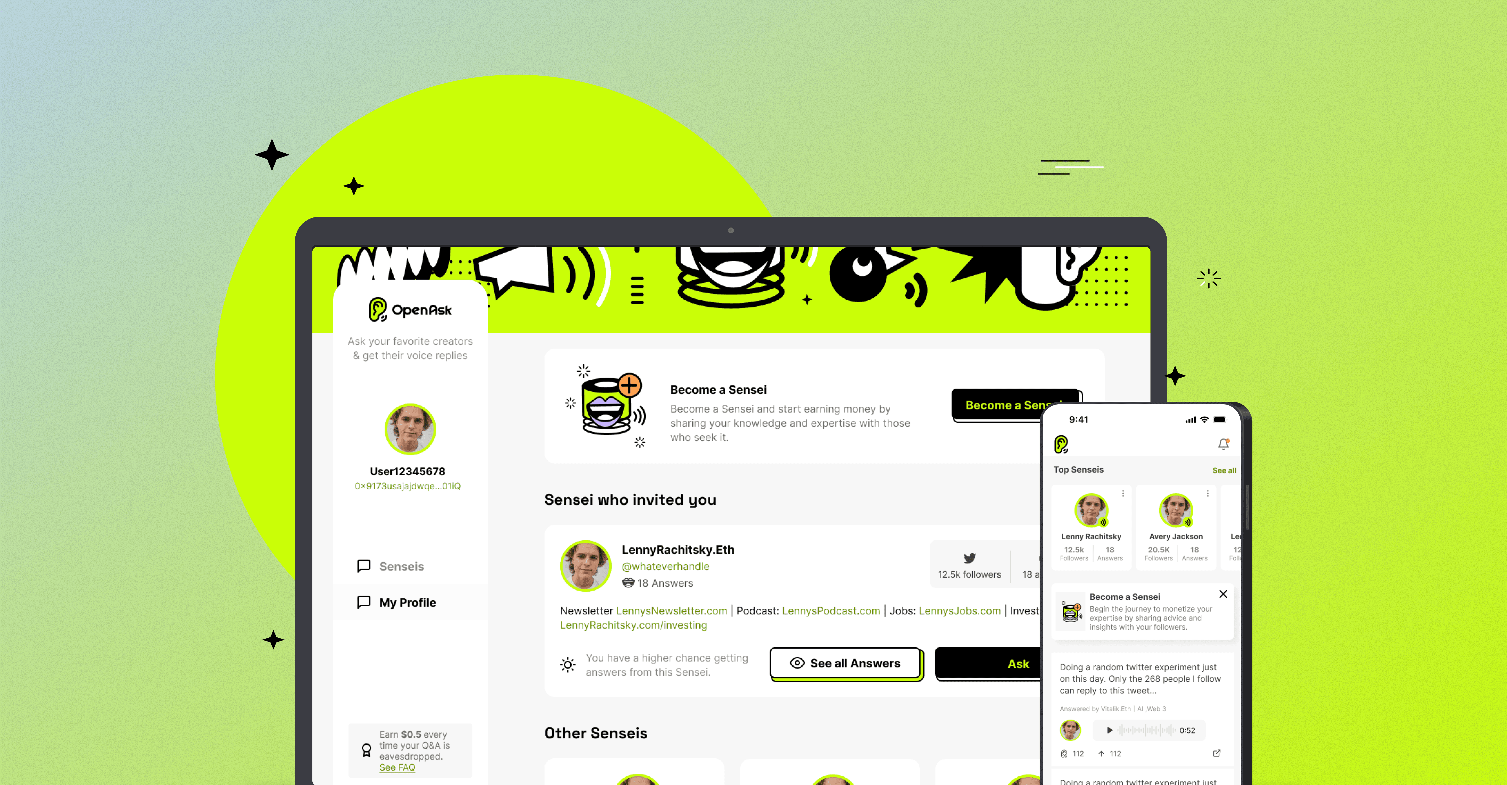 Empowering influencers and experts to monetize their knowledge, OpenAsk is a cutting-edge paid questioning platform connecting creators with their fans. Our mission was to create a seamless Q&A experience and a visually captivating brand that would resonate with a wide audience.