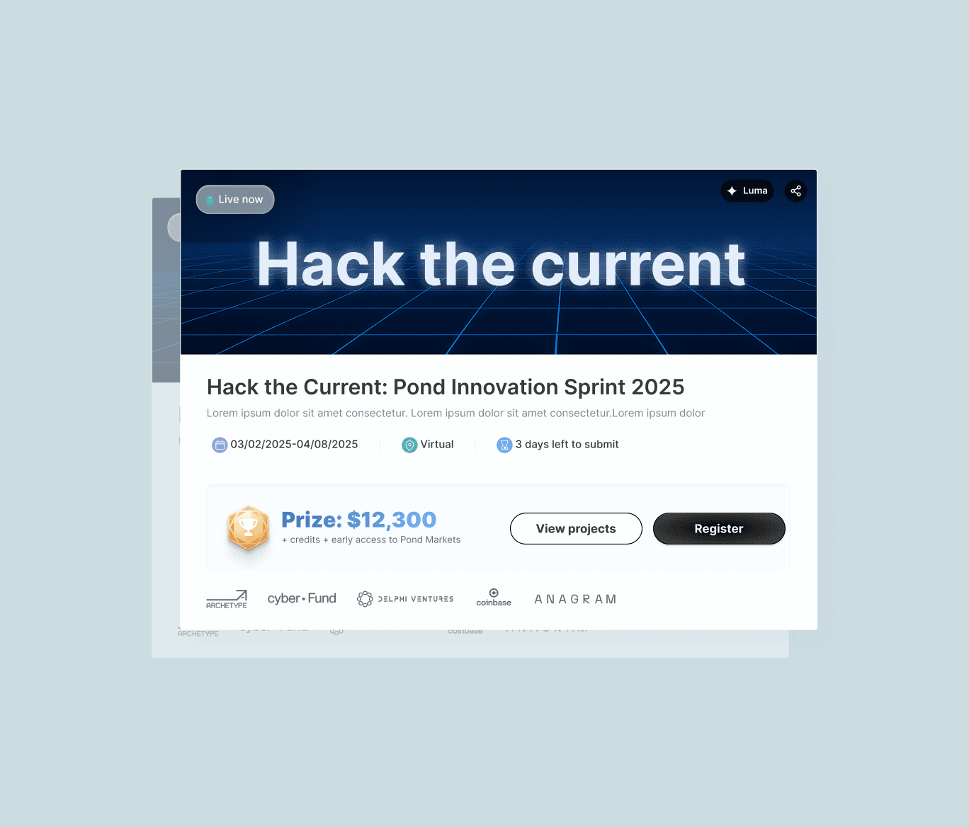To encourage community participation, we created opportunities for every user to feel involved. Users could vote for their favorite projects, share the event with friends, and invite others to join their teams. The team invitation flow supported collaboration and helped Pond grow its user base while increasing engagement across the ecosystem. Pond continues to grow, and we’re proud to have played a foundational role in their journey. Our collaboration with Pond demonstrates how thoughtful design can drive early traction and long-term growth. By aligning user needs with product clarity, we helped shape an ecosystem that empowers AI builders to launch, scale, and succeed.