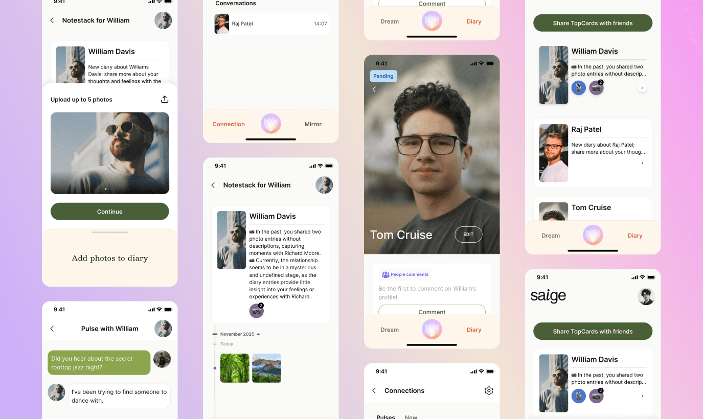 Through our collaboration, we helped Saige build a unified brand presence—from logo to product experience—that amplifies their mission to create a dating platform for people who are serious about genuine connections.